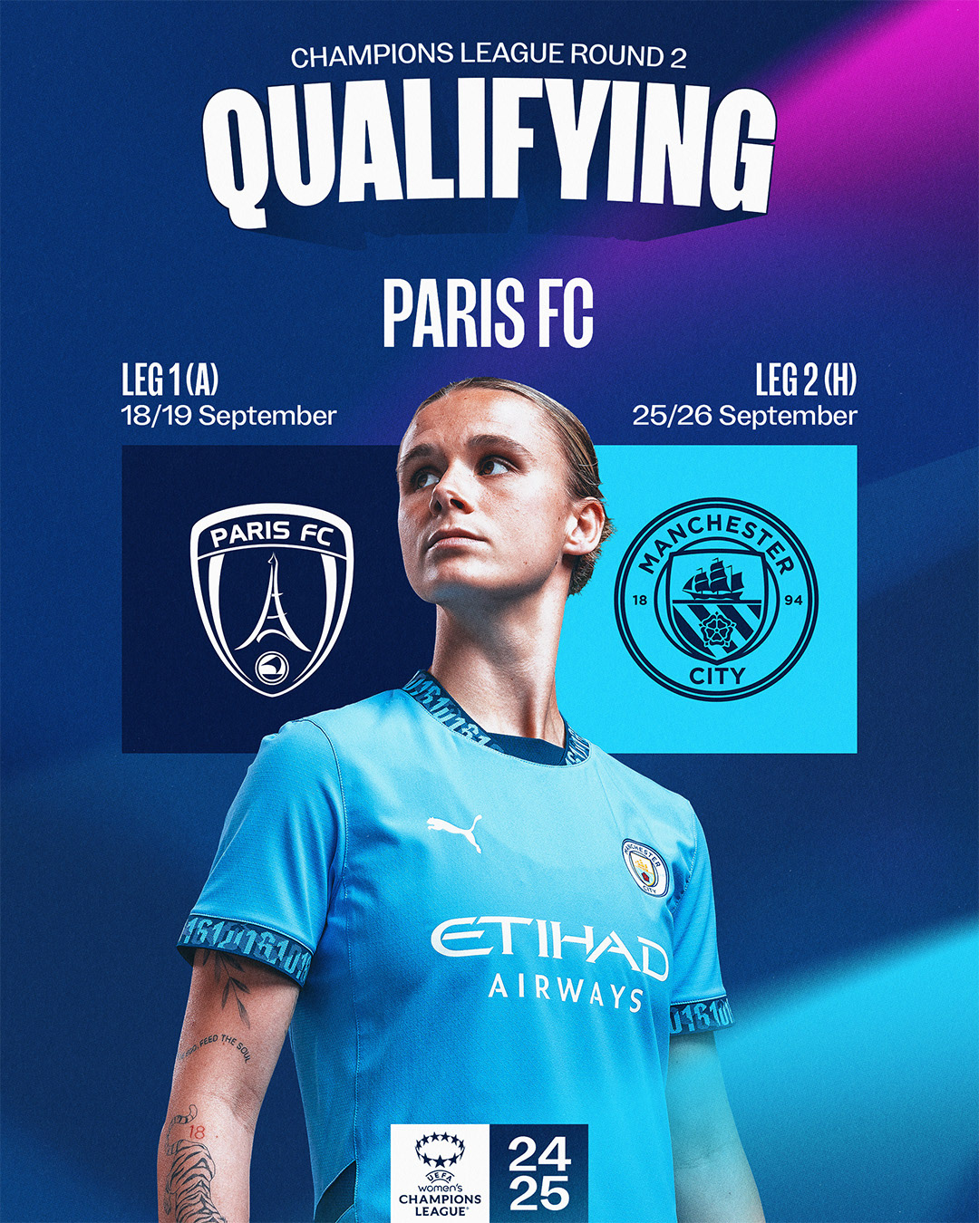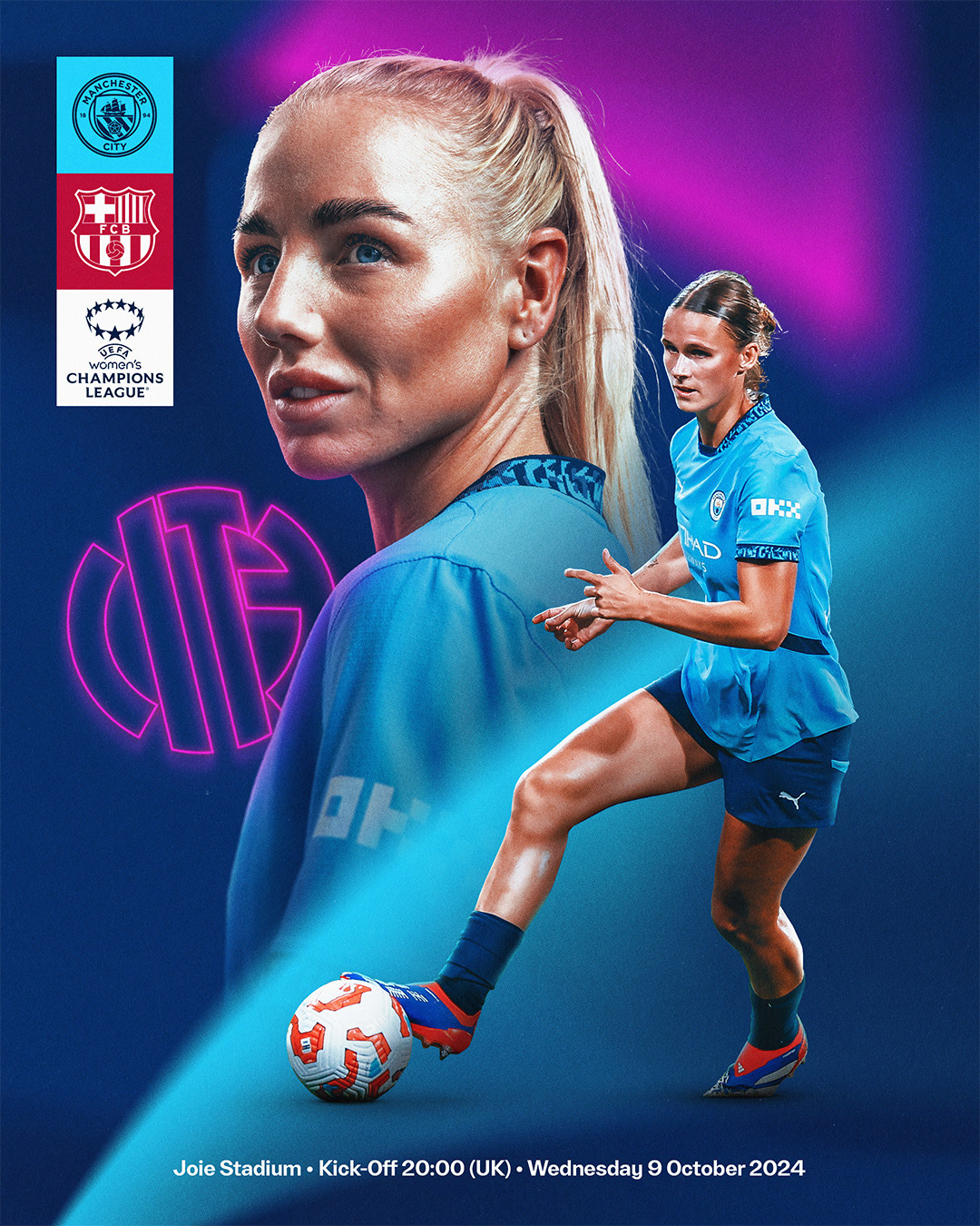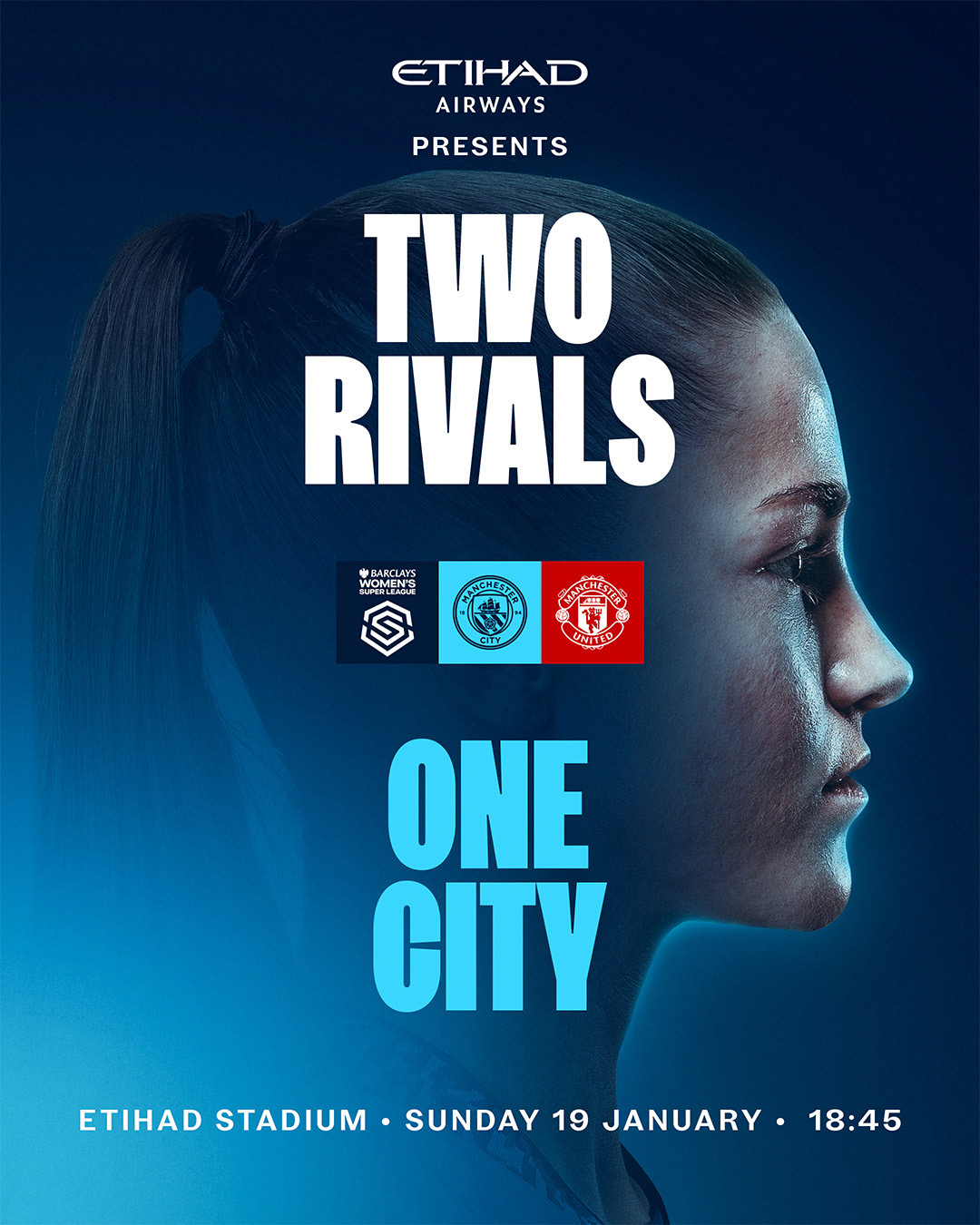 This season the women's team played three games at the Etihad Stadium. I was tasked with designing bespoke imagery for each fixture, then rolling out the campaign to a variety of digital, print, and paid media platforms.