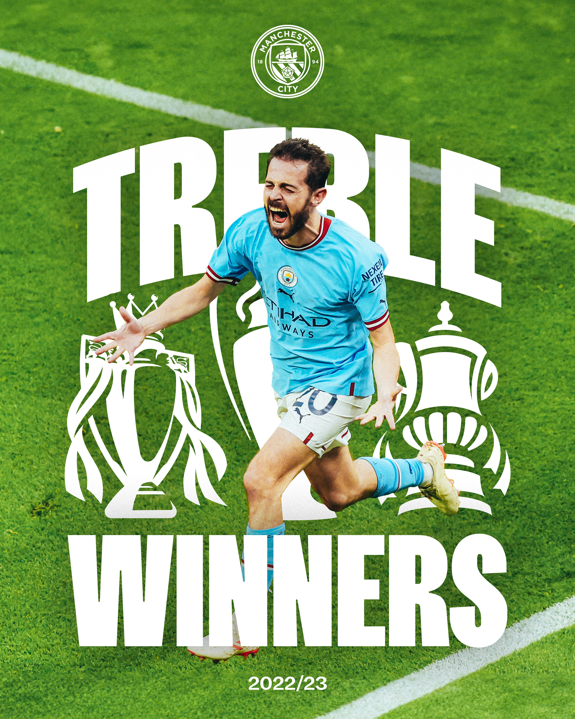 In March 2023 I joined Manchester City as a Graphic Designer in the content team. Part of this role involves designing posters before a match and live reactive graphics to post after a win, a selection of which are shown below.