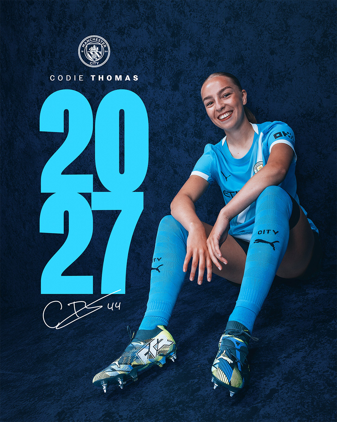 I also created branding for player contract extensions. I chose to leverage our impactful studio photography in a stripped-back editorial design, which aligned with our wider approach for the 25/26 season. The branding I developed allowed each player announcement to utilise unqiue imagery compositions whilst still maintaining a consistent visual language.