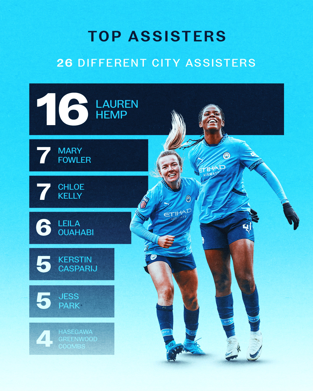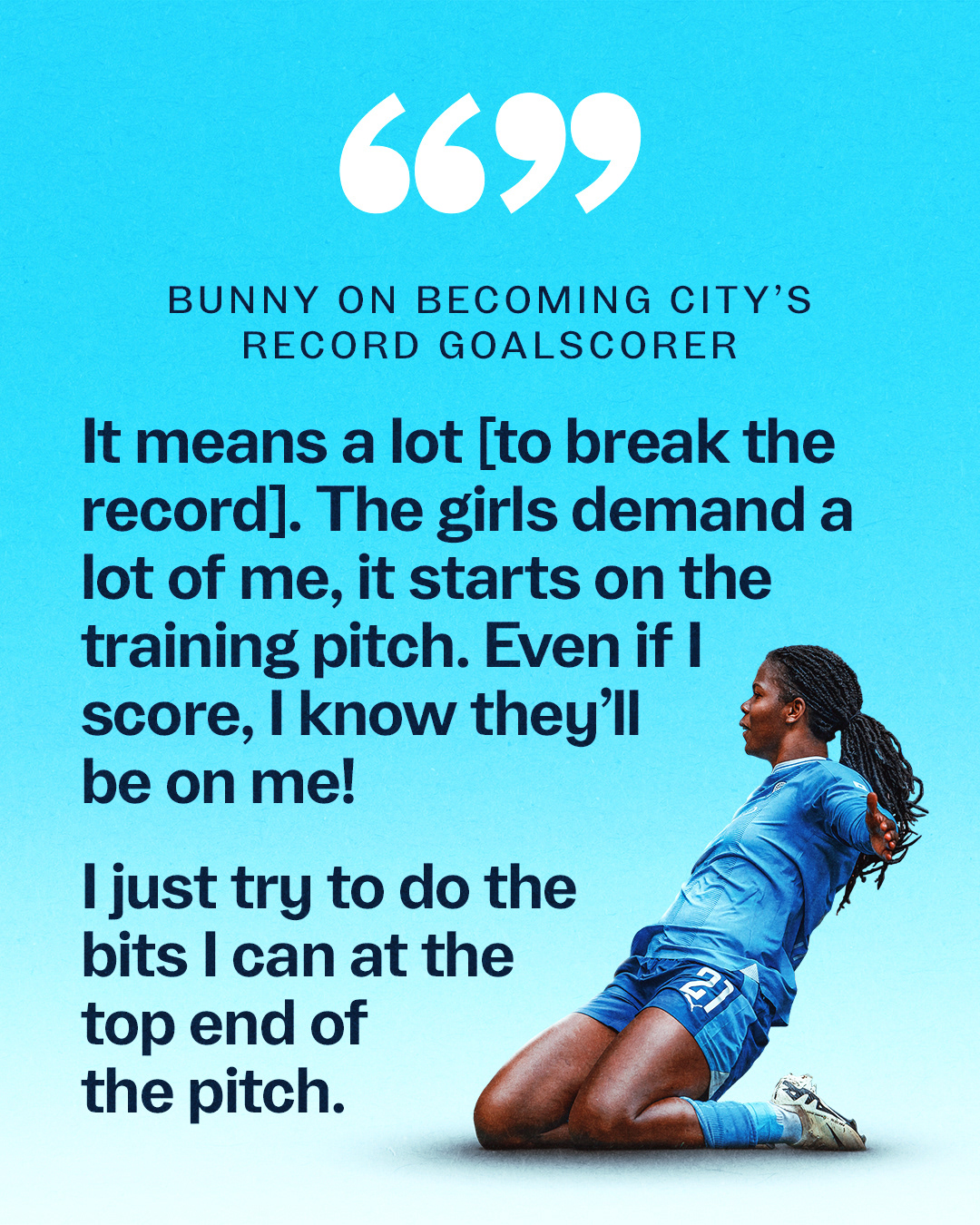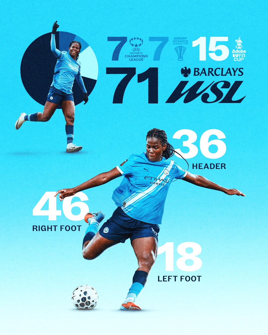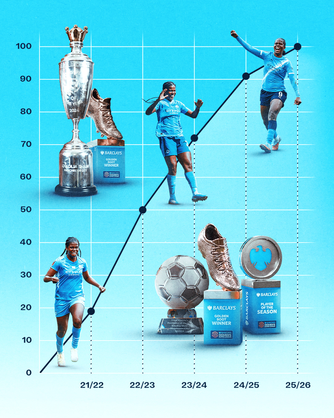 In December 2025 Bunny Shaw scored her 100th City goal, the first woman to achieve this milestone in club history.